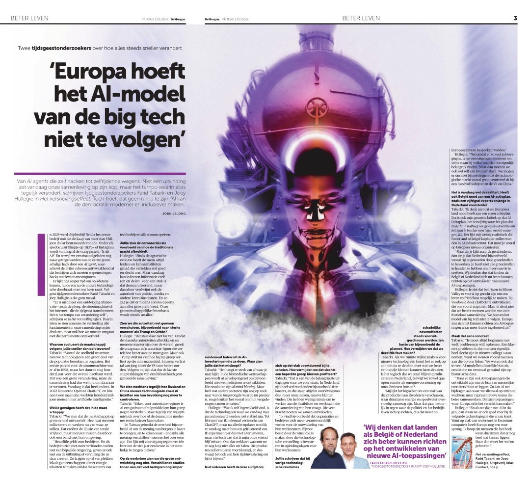 In een geweldig interview met Jorn Lelong (De Morgen) stonden Joey Hullegie en Farid Tabarki twee pagina’s lang stil bij onze bestseller ‘Het versnellingseffect’